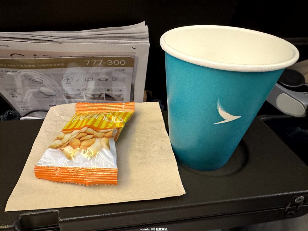 さて、搭乗したらまずはドリンクが配られます。
